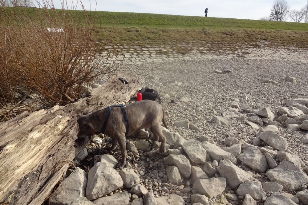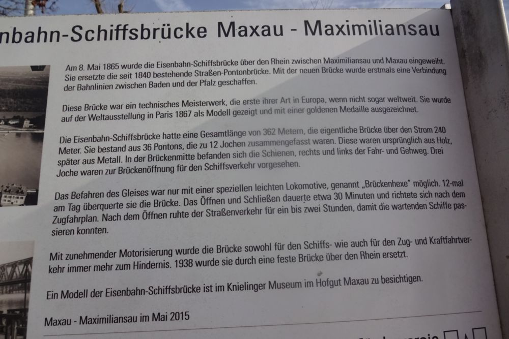Unser Ausflug beginnt an der Rheinbrücke bei Maxau, einer 6-spurigen Straßenbrücke, über die im Schnitt täglich 78.000 Fahrzeuge donnernVis-a-vis trister BetonbauEin Stück weiter die 2-gleisige Eisenbahnbrücke mit 292 m GesamtlängeEin Schiff reiht sich an das andere – Freilauf für den HundNeues erschnüffelnMal mit einem Lastkahn mitfahren?Auch der Rhein hat seine Idylle…Blick zurück auf die EisenbahnbrückeIn Bewegung…StrudelDie Sonne tanzt auf dem WasserHimmelwärtsPause!Nachdenken…Treibholz – Duft der weiten WeltInfotafel…Auf dem Rückweg