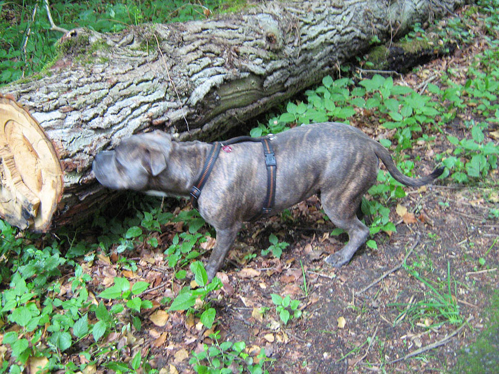 Bei unseren Spaziergängen schließen wir uns machmal Hundetreffs an, dabei lernt er Gelassenheit gegenüber seinesgleichen oder kann sich durch Toben prima verausgaben. So profane Dinge, wie seinen Stuhlgang nach Normalität kurz zu begutachten, gehört dazu. Über die Nahrung lässt sich dazu gut ausgleichen.